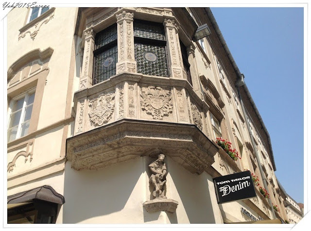 太陽很大,剛進入小巷子,就開始注意何處有清涼飲料,在歐洲要喝杯冷飲似乎不容易,不外乎可樂或冰淇淋。巷子裡幾乎沒什麼人,非常的閒散。兩旁有美麗的房舍還有懸掛著各具特色的招牌。在這座古老小村莊,我們看見了一間大型超市,就進去逛逛尋覓。發現許多旅遊部落客推薦的軟糖和氣泡錠,價廉物美呢!於是就在此地買了許多巧克力各種奇特造型軟糖還有各種口味的氣泡錠,買得太開心,忘了還有旅程還在進行式,所以就拖著這些價廉物美的歐洲糖果繼續逛下去。所以克雷姆斯印象,這間超市還有累贅的糖果,絕對是重要的一環。